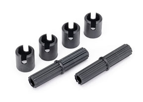 The Traxxas 8139 is a replacement part set that includes two center half shafts and four pin retainers. These external splined half shafts are designed for various Traxxas models, including the TRX-4® and TRX-6. The durable plastic construction ensures a secure fit and reliable performance, making it an essential component for maintaining your RC vehicle's drivetrain.